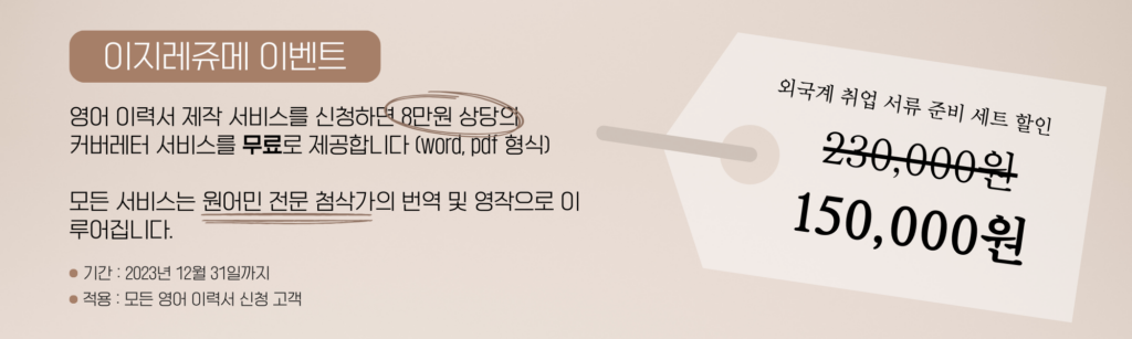 다년간의 레쥬메 첨삭 경험으로 외국계 취업 & 영어이력서 제작 팁을 공유합니다.
